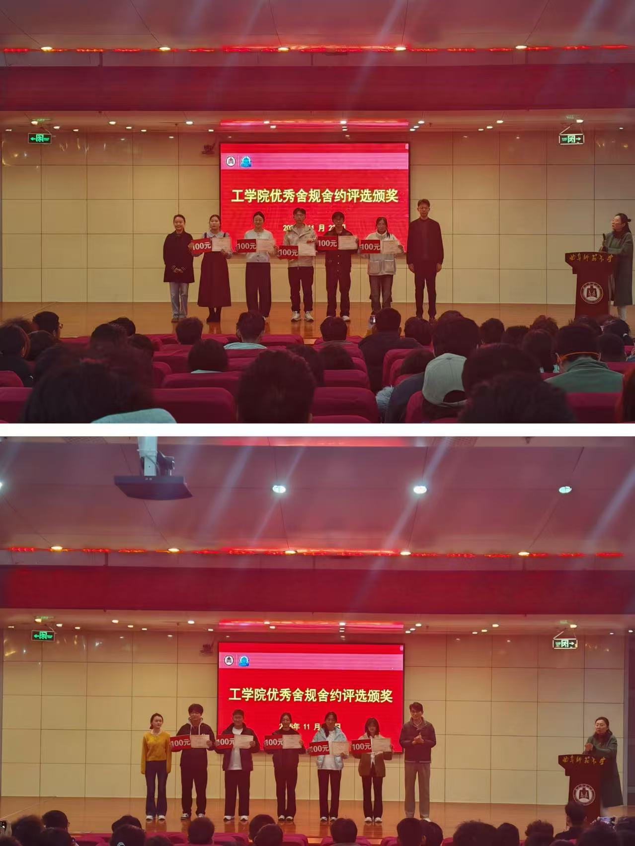 会议最后,举行了学院舍规舍约大赛优秀成果颁奖仪式。经过严格评选,10个宿舍凭借内容详实、贴合实际、富有创意的舍规舍约脱颖而出,获得表彰。学院为获奖宿舍颁发荣誉证书,并给予每个宿舍100元现金奖励,以榜样示范引领全体学生共同营造文明和谐的宿舍氛围。