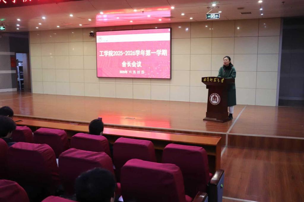 为强化宿舍规范化管理,提升舍长责任担当,筑牢校园安全防线,营造和谐向上的宿舍文化氛围,11月22日,工学院在图书馆报告厅隆重召开舍长专题工作会议。学院全体宿舍舍长参会,团委书记滕艳主持会议并讲话。