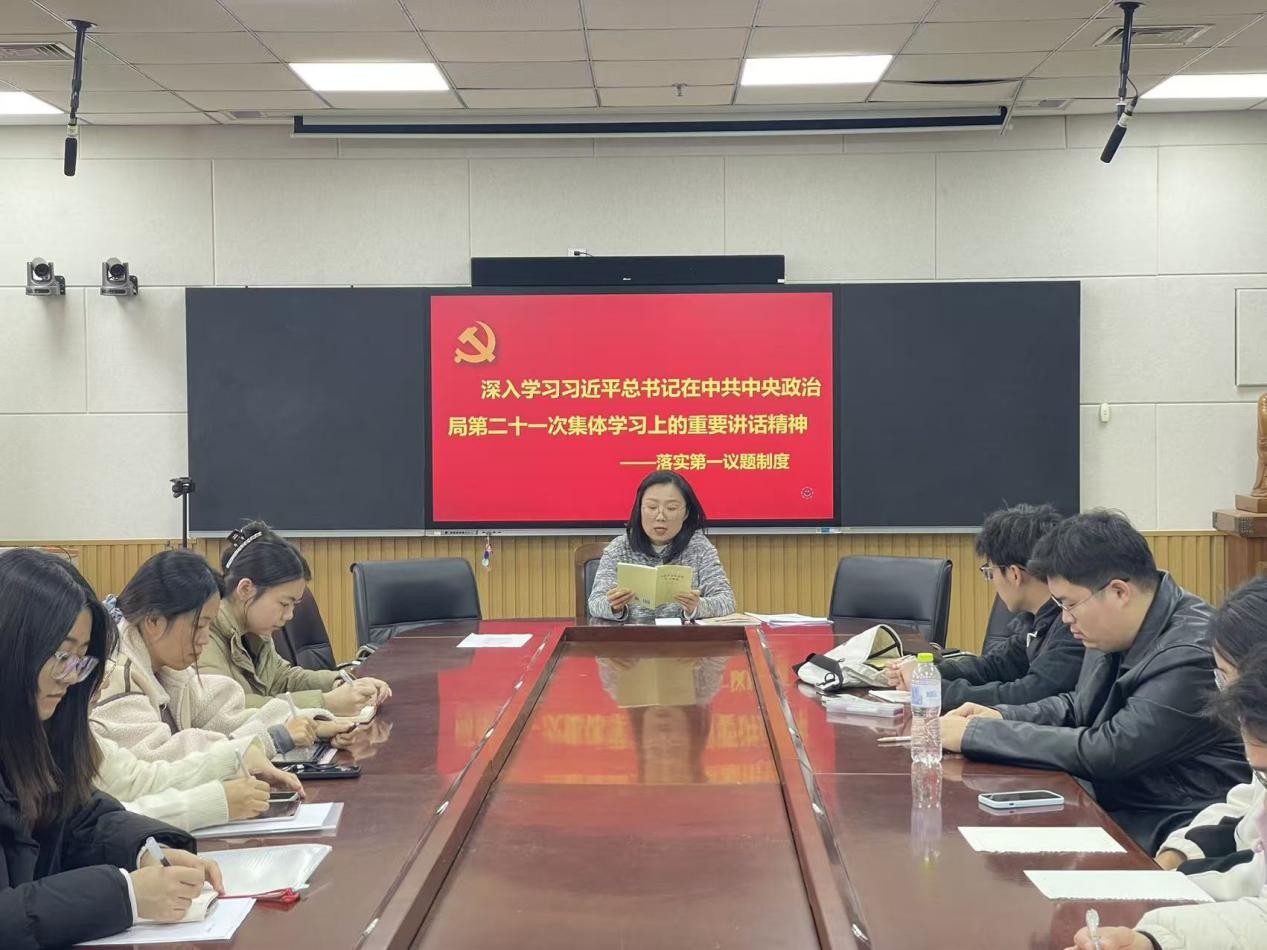 首先,会议落实“第一议题”制度,全体党员在滕艳的带领下,深入学习习近平总书记在中共中央政治局第二十一次集体学习时关于“深入贯彻落实新时代党的组织路线”的重要讲话精神。会议强调,要深刻领会新时代党的组织路线的科学内涵和实践要求,自觉用党的科学理论武装头脑,掌握马克思主义理论武器,切实把党支部建设成为贯彻落实党中央决策部署的坚强战斗堡垒。全体党员要结合本科生学习生活实际,在专业学习、社会实践、服务同学中发挥先锋模范作用,把党的领导贯穿于成长成才全过程。