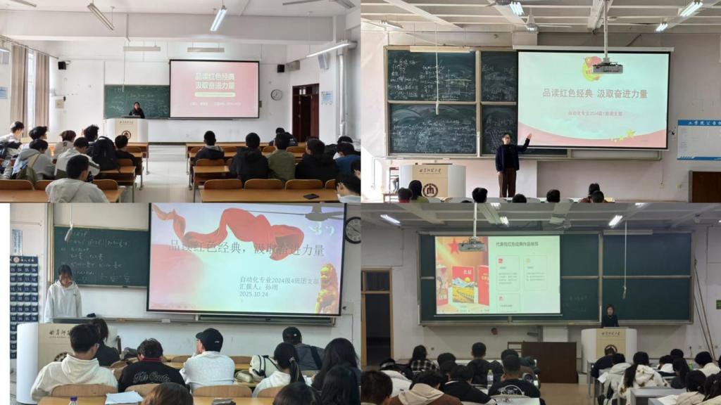 本次活动采用小组讨论的形式,各团支部成员共同品读了多部红色经典著作,并结合书中内容分享了个人的学习心得与思考。在交流过程中,同学们不仅重温了那些振奋人心的历史时刻,还围绕“如何将所学融入日常学习生活、以实际行动践行革命先辈精神”展开了深入探讨。此外,活动还特别强调了要将红色文化内化于心、外化于行,鼓励大家树立远大理想,努力成长为有责任、有担当的新时代青年。