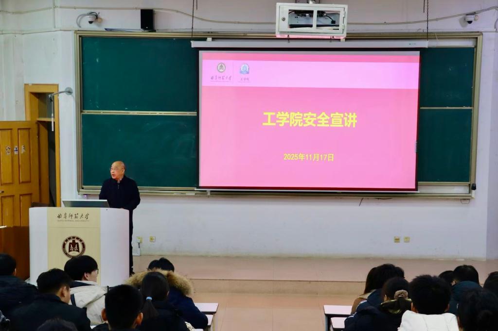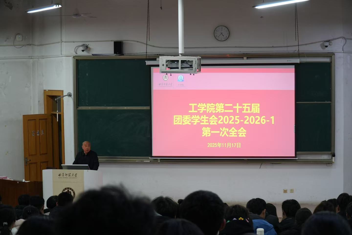 为推动学院学生工作规范化、高效化开展,明确新学期团委学生会工作方向与核心任务,11月17日,工学院第二十五届团委学生会第一次全会暨安全宣讲会在JE101教室成功举办。会议由工学院党委副书记肖龙航主持,全体辅导员、团委学生会全体成员参会,共同为学院学生工作高质量推进凝聚共识、规划路径。