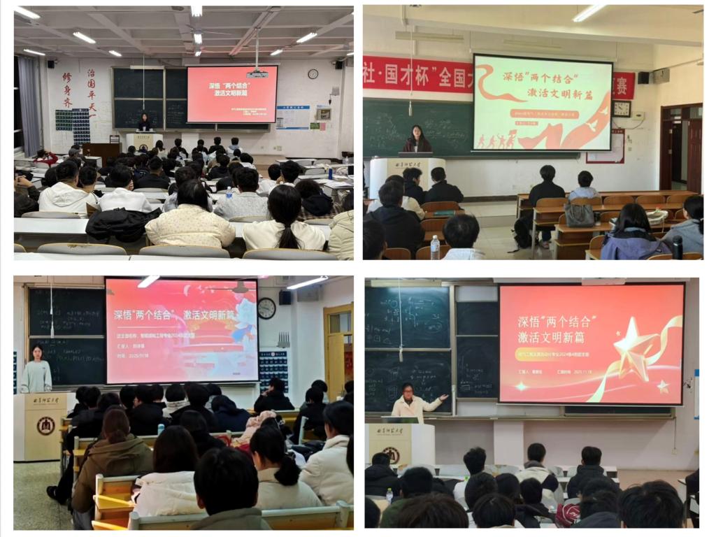 为深入学习贯彻习近平文化思想,推动党的创新理论在青年群体中入脑入心、见行见效,11月18日,工学院团委组织各团支部开展“深悟‘两个结合’,激活文明新篇”主题团日活动。活动聚焦马克思主义基本原理同中国具体实际、同中华优秀传统文化相结合的深刻内涵,引导团员青年把握其在理论创新与文明赓续中的关键作用,进一步筑牢信仰根基、增强文化自信。