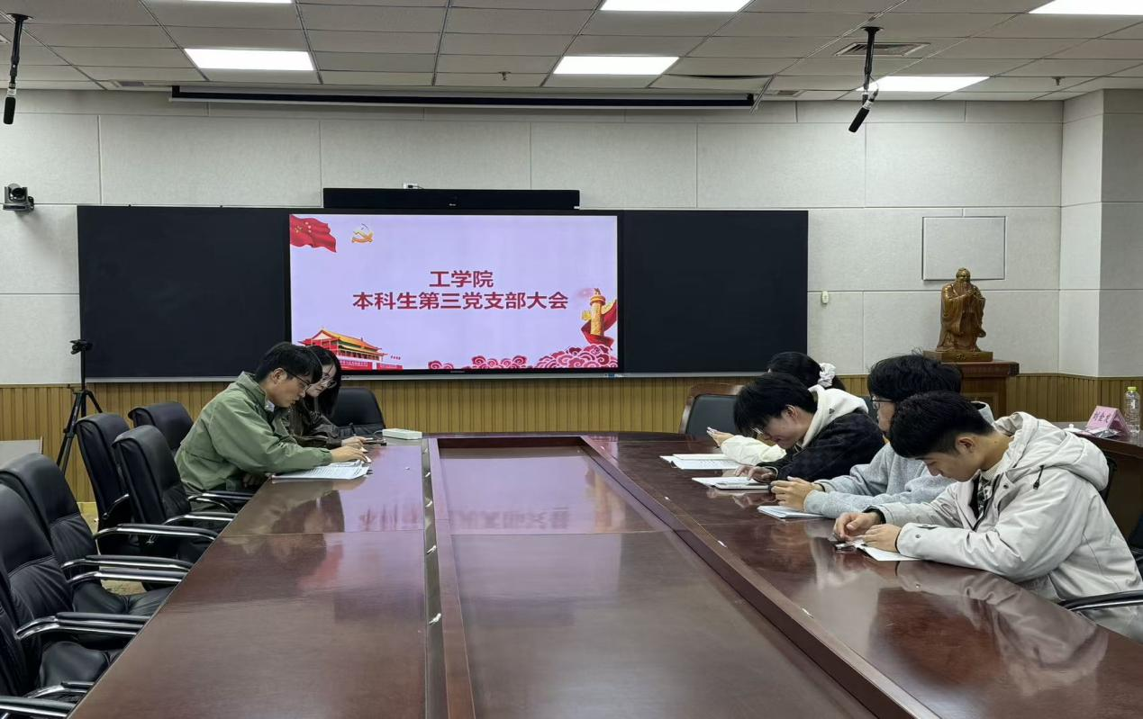 为深入贯彻习近平新时代中国特色社会主义思想,切实将党的二十大精神落到实处,10月21日,工学院本科生第三党支部于JC903召开本科生第三党支部大会,会议由工学院本科生第三党支部书记韩宜君主持,党支部全体党员参加。